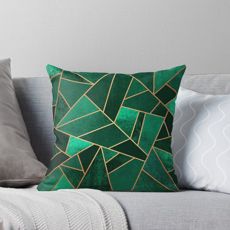 - Geometric Emerald Green & Gold Cushion Covers, Pillow Covers, Cushion Covers 16 x 16 inch